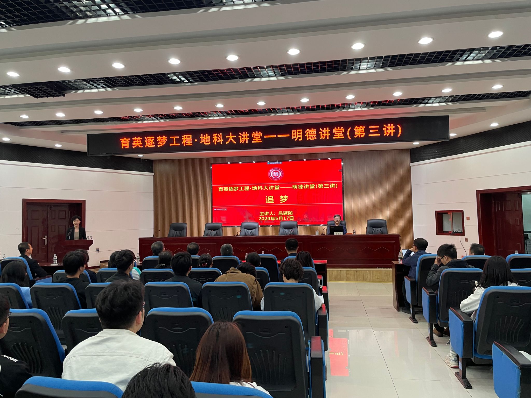 5月17日下午,best365足球官网邀请“全国高校黄大年式教师团队”负责人,国家科技进步二等奖、黑龙江省省长特别奖、省部级科技进步一等奖、国务院政府特殊津贴获得者吕延防教授做客地科大讲堂之明德讲堂,为广大师生作题为“追梦”的讲座。best365足球官网、非常规油气研究院的150余名师生聆听本次讲座。讲座在机关楼一楼会议室举行,由best365足球官网党委书记韦丹宁主持。