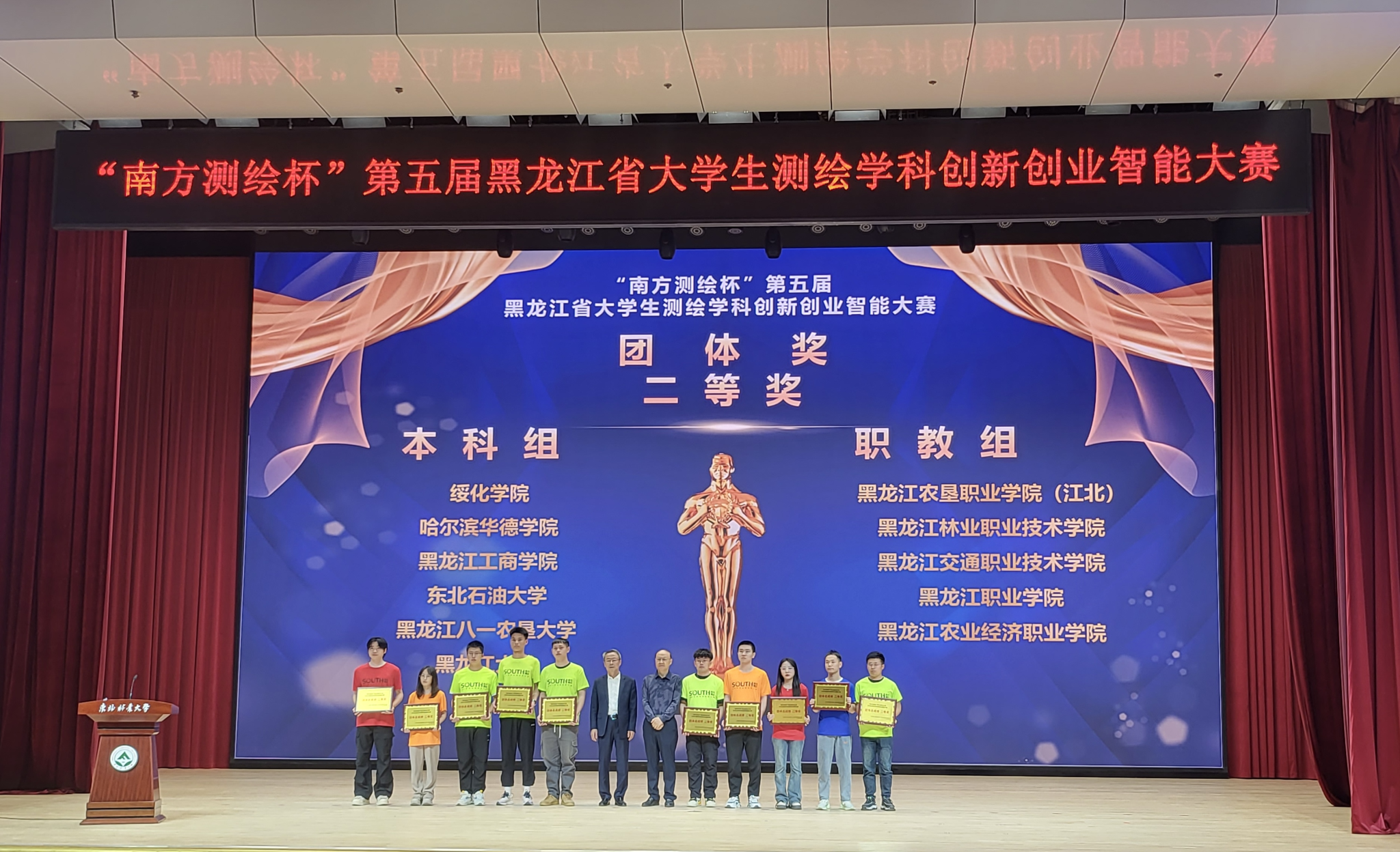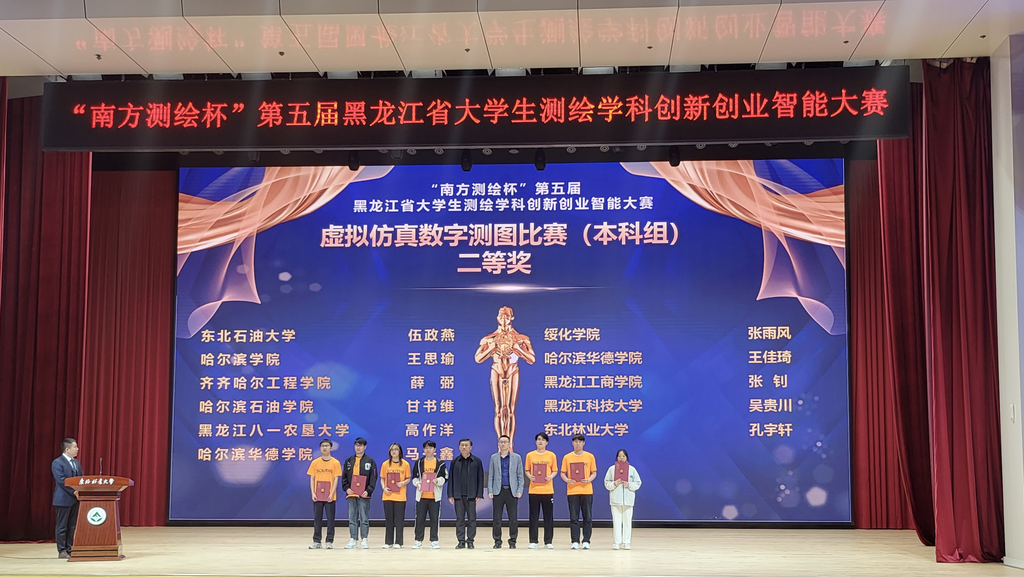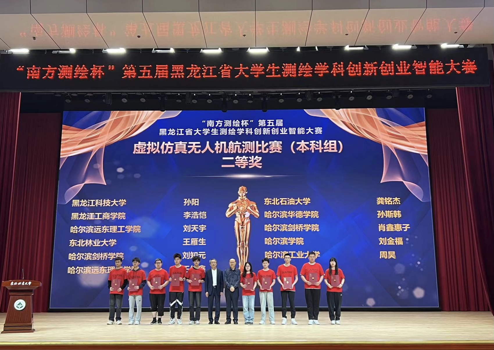 本次竞赛由黑龙江省教育厅和黑龙江省测绘地理信息局联合主办,东北林业大学和黑龙江省测绘地理信息学会教育工作委员会联合承办,广州南方测绘科技股份有限公司协办,设有“虚拟仿真数字测图”、“虚拟仿真无人机航测”、“虚拟仿真机载激光雷达”及“RTK数字测图”四个分赛项,共有来自全省35所高校、252名选手同场竞技,为历年来参赛学校及学生最多的一次。