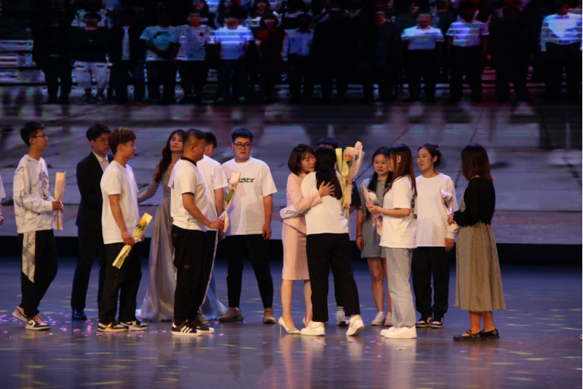 期间,2019级毕业班辅导员赵瑛杰老师登台寄语全体毕业生,她详细回顾了与同学们相处的点滴瞬间,表达了对每位学生的美好祝愿,并通过深情演绎的朗诵《我亲爱的孩子们》叮嘱同学们珍惜当下的美好生活,用实际行动回报祖国和母校的培养。2019级毕业生代表惊喜登台为赵老师献上鲜花和拥抱,全场毕业生自发起立感谢老师四年来的付出与关爱,场面热烈温馨,师生纷纷感动落泪。
