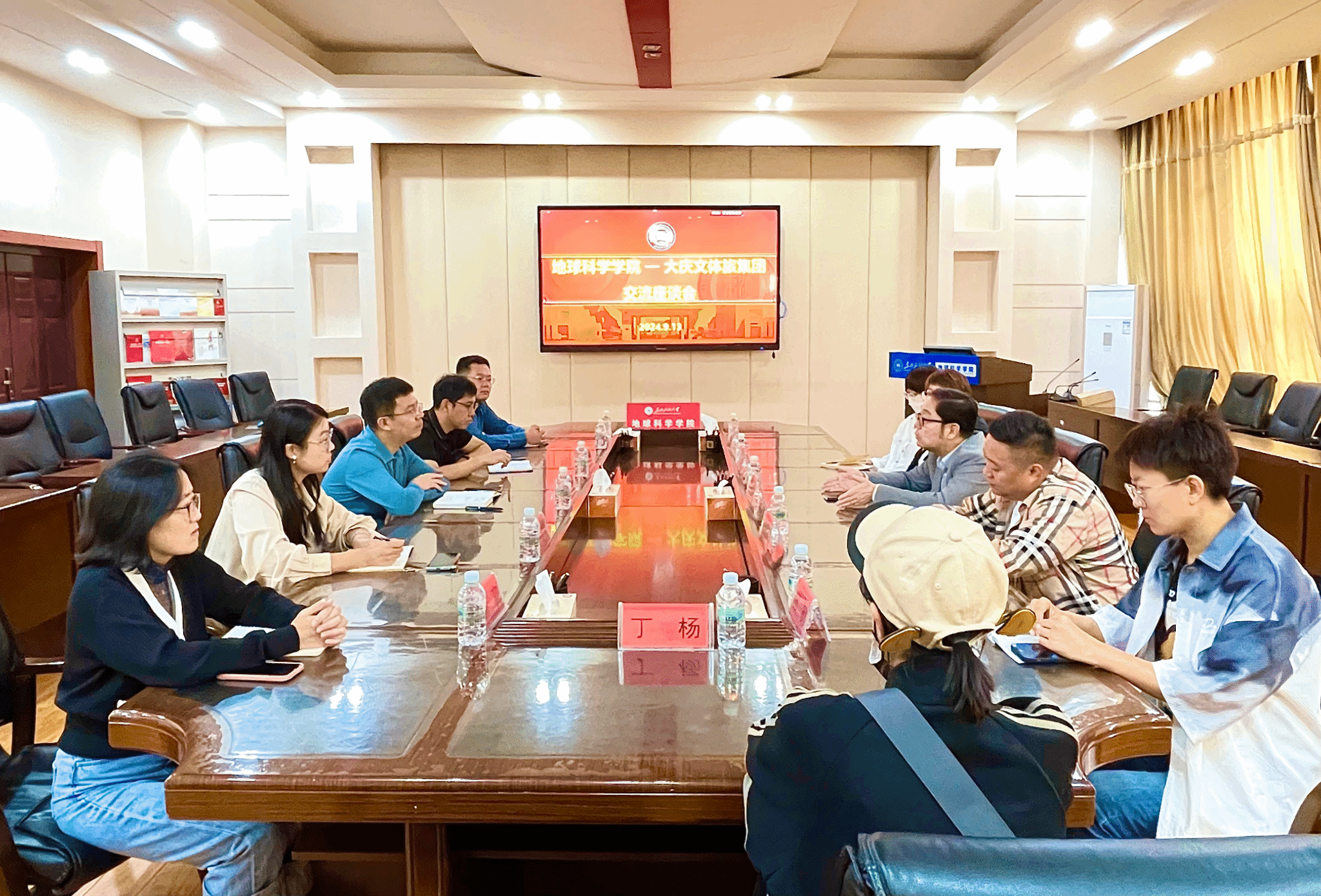 邢世凯介绍了大庆文体旅集团有限责任公司基本情况和业务范围,对学院地学科普基地建设及科普教育取得的成绩表示祝贺,并就地学研学课程及研学路线建设、校企未来合作方向等方面提出了建议。