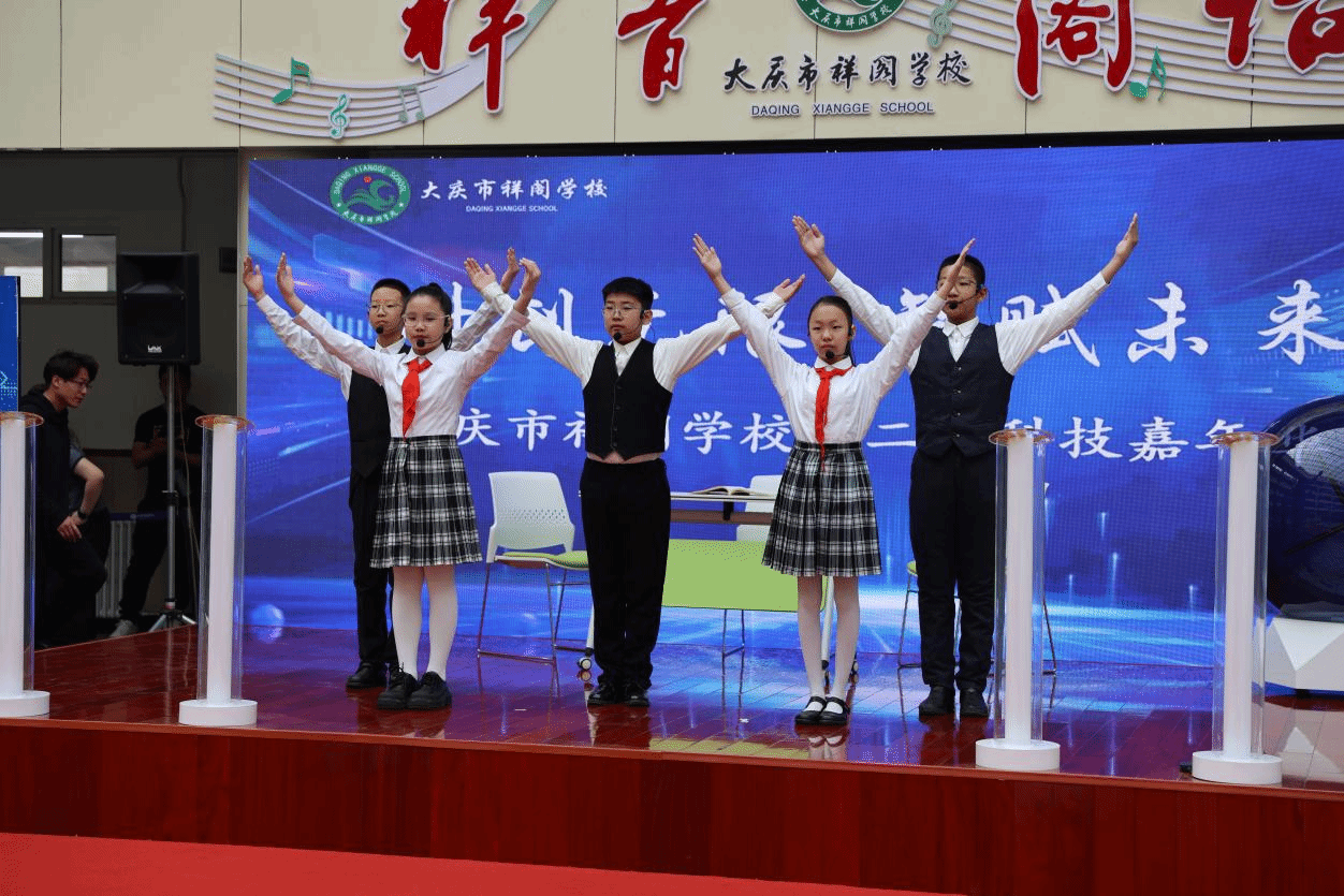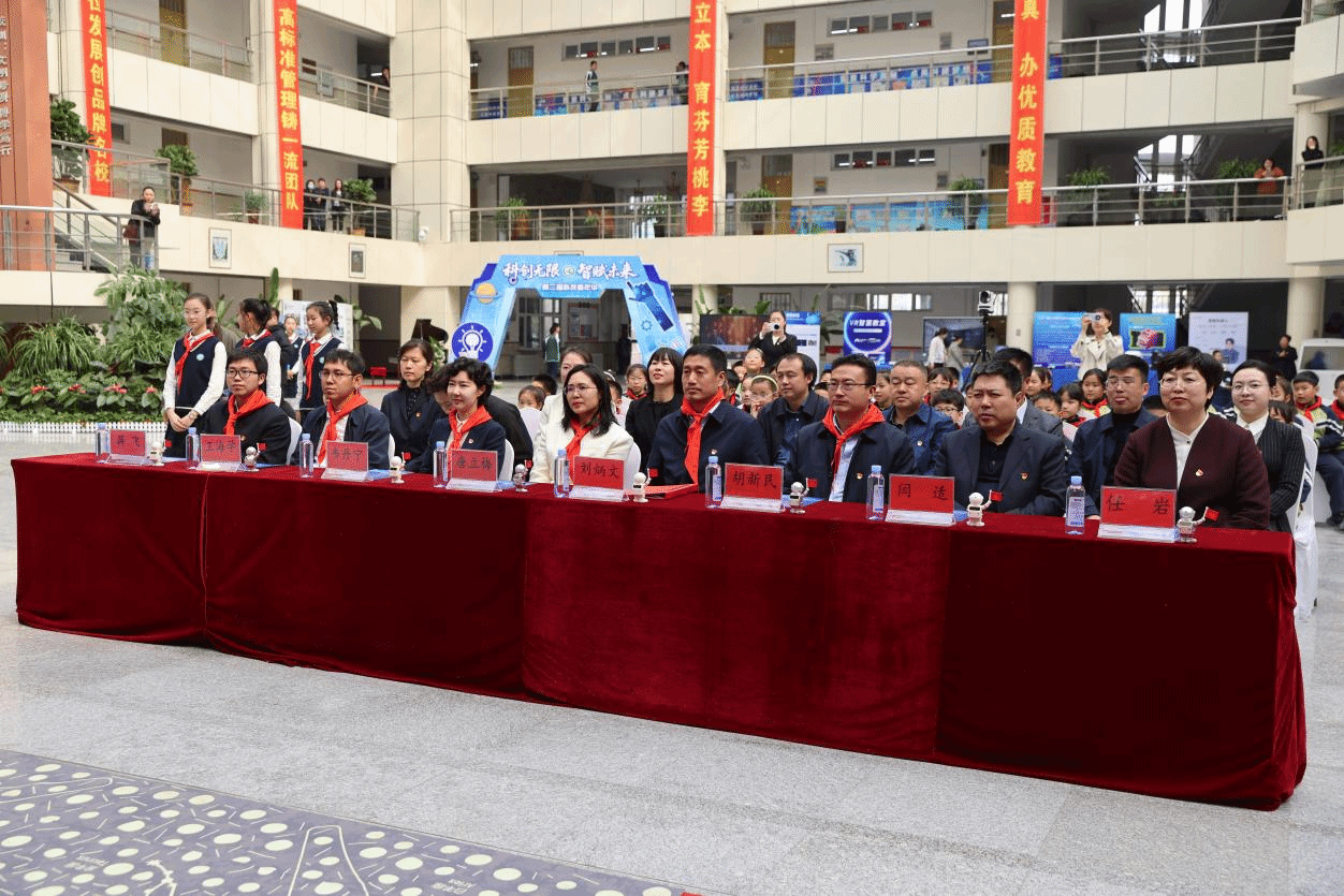 与会人员参观祥阁学校阳光大厅,共同走进“深海探秘”“太空探梦”“科技逐梦”三大主题展区,观摩学生自主设计的机器人装置、祥阁号航母、宇宙飞船、空间观察站等创新作品,感受青少年对科学探索的蓬勃热情。