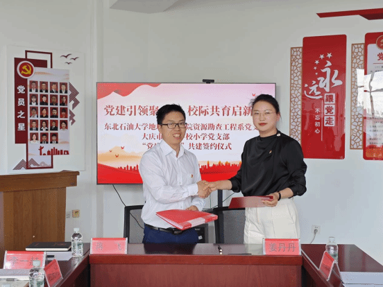 为进一步推进两校的交流与合作,5月23日,best365足球官网资源勘查工程系党支部与大庆市祥阁学校小学党支部,举行“党建引领聚合力 校际共育启新程”党支部联建共建签约活动。