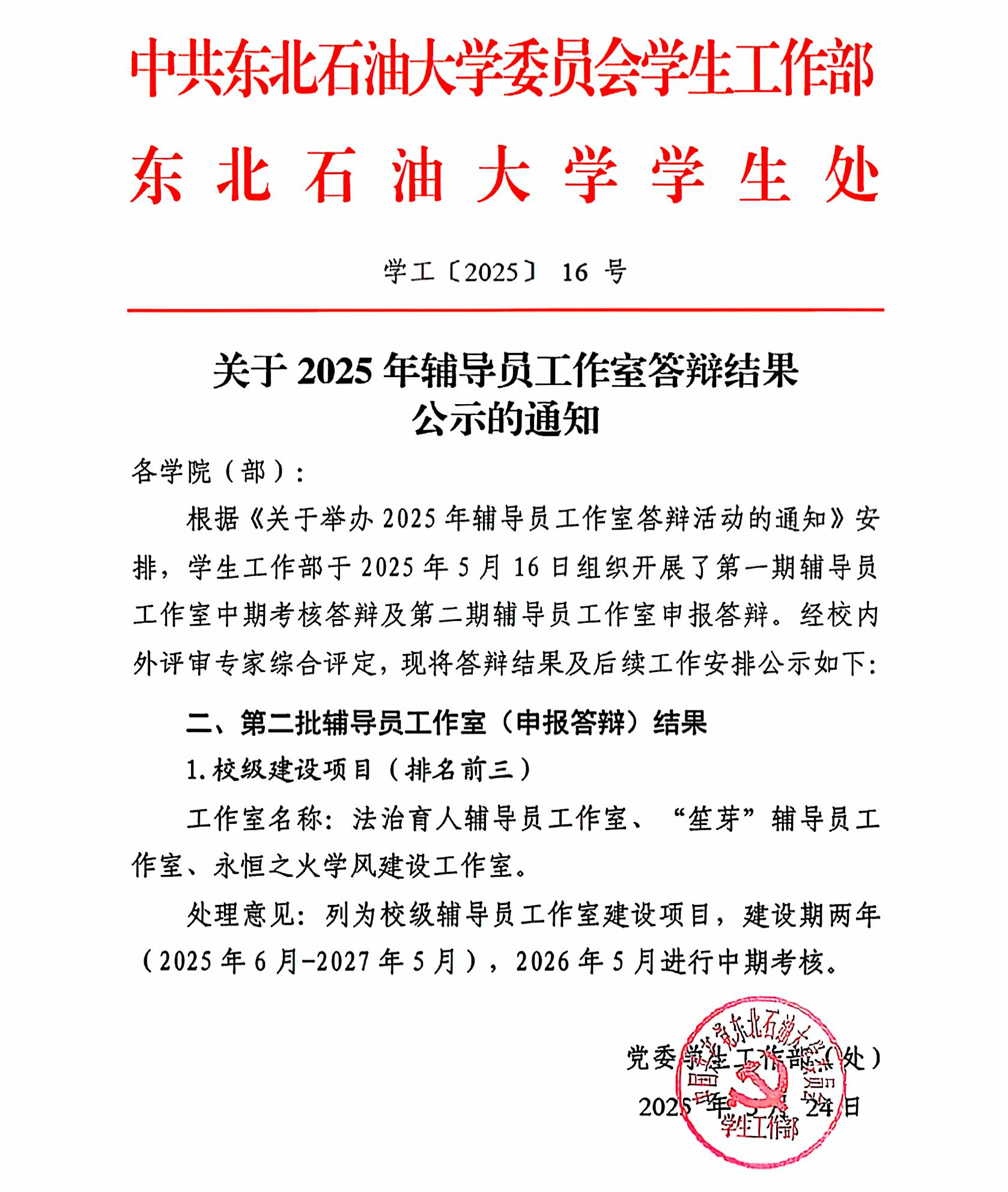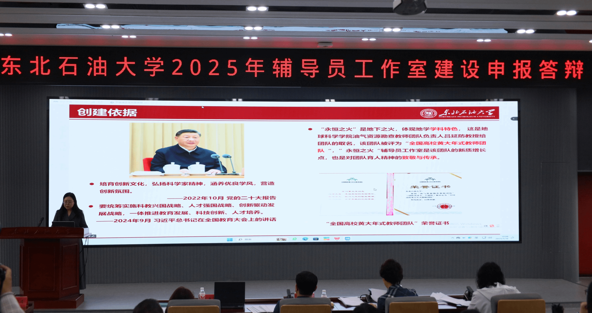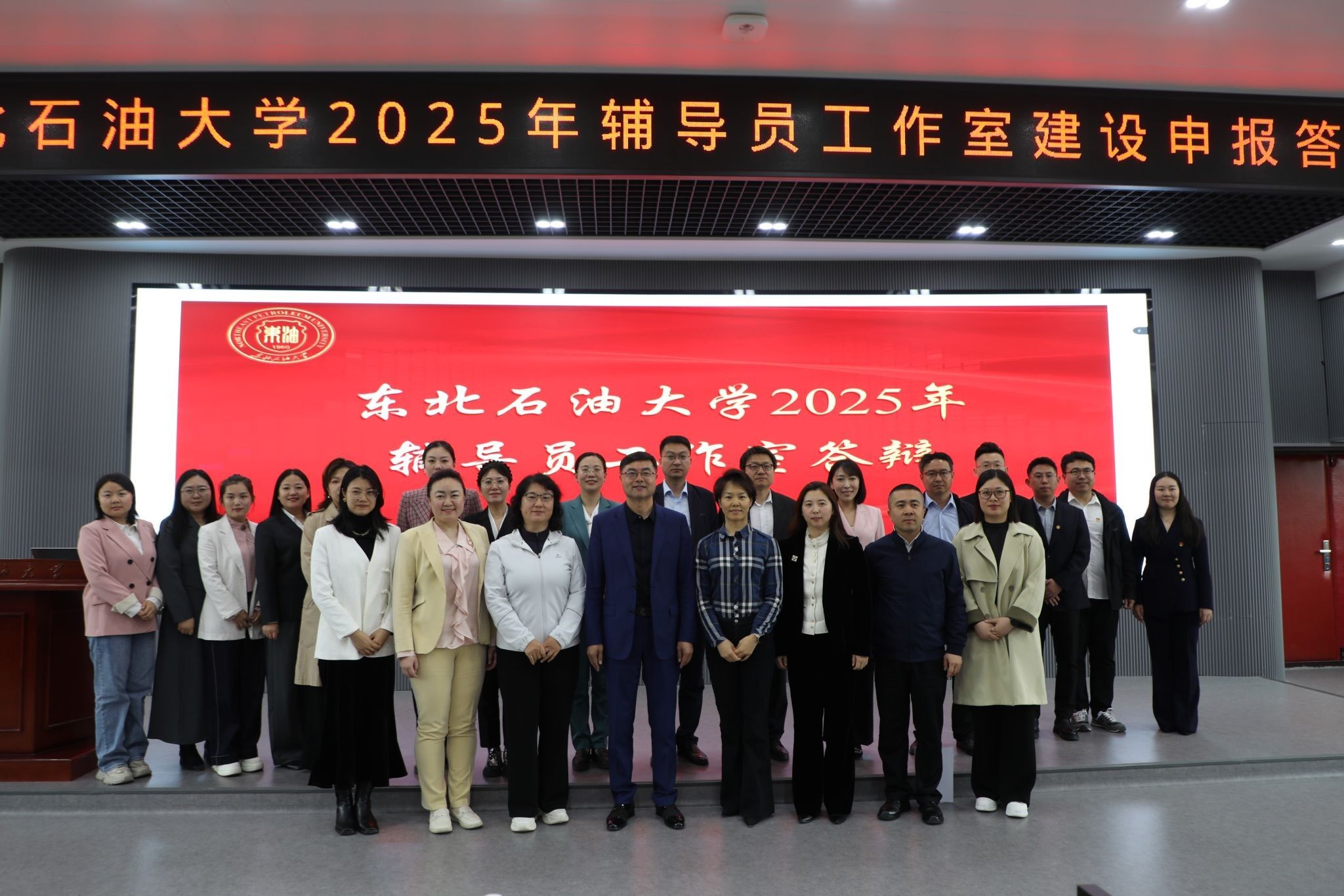 本次工作室申请分为材料申报和现场答辩两个环节。经过前期材料审核,于5月16日,我校在1H211举办2025年度辅导员工作室建设申报答辩活动,校党委副书记、工会主席于长青出席,黑龙江八一农垦大学正处级辅导员、省高校辅导员名师工作室负责人、龙江最美高校辅导员佟丹丹,我校学生工作部、团委、招生就业处、工会、大庆精神教育研究中心等部门相关负责人担任评委,全体辅导员现场观摩。