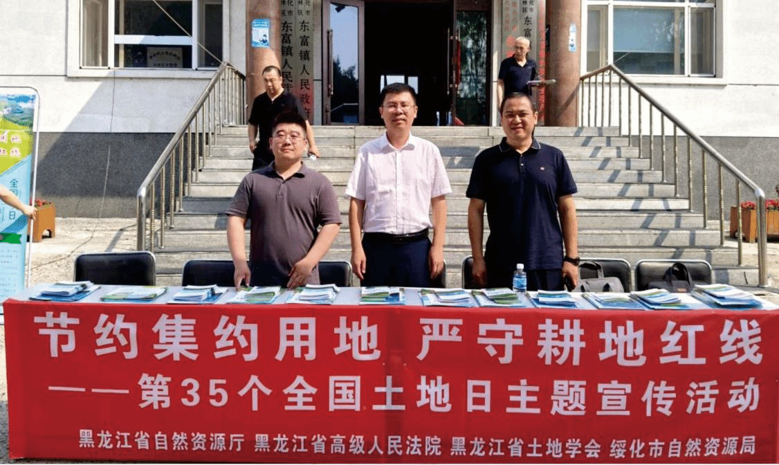 6月25日,黑龙江省自然资源厅、黑龙江省高级人民法院、黑龙江省土地学会、绥化市自然资源局、中国地质调查局沈阳地质调查中心、best365足球官网、绥化市自然资源局北林分局和东富镇人民政府等8家单位在绥化市东富镇政府共同举办第35个全国土地日黑土地保护主题宣传活动。活动主题为“节约集约用地,严守耕地红线”。best365足球官网与沈阳地质调查中心生态地质室联合宣言《守护寒地黑土、筑牢北国粮仓》,强化资源保护责任担当。
