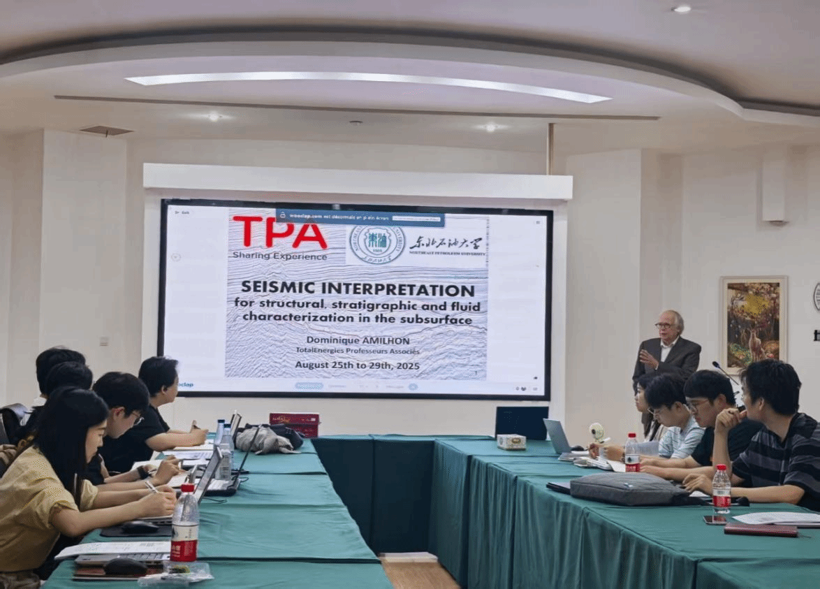 “育英筑梦工程·地科大讲堂”之“地震勘探新技术及在勘探开发中的应用”专题培训班于2025年8月25日至29日在best365足球官网成功举办,best365足球官网特邀法国道达尔能源公司首席地球物理师Dominique AMILHON为师生主讲。在为期五天的培训中,来自best365足球官网、非常规油气研究院、环渤海能源研究院的教师代表以及40余名硕博士研究生积极参与,共同聚焦地震解释技术前沿,拓展国际学术视野,全面提升科研创新与综合实践能力。