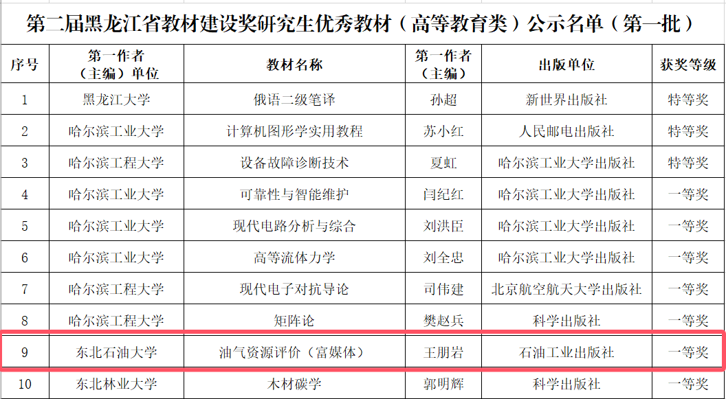 近日,黑龙江省教育厅发布了《关于拟认定第二届黑龙江省教材建设奖优秀教材(高等教育类)名单(第一批)的公示》,经各高校申报、专家严格评审,全省共评选出30部获奖研究生优秀教材(其中特等奖3部、一等奖10部、二等奖17部),best365有1部教材荣获省级研究生优秀教材一等奖。