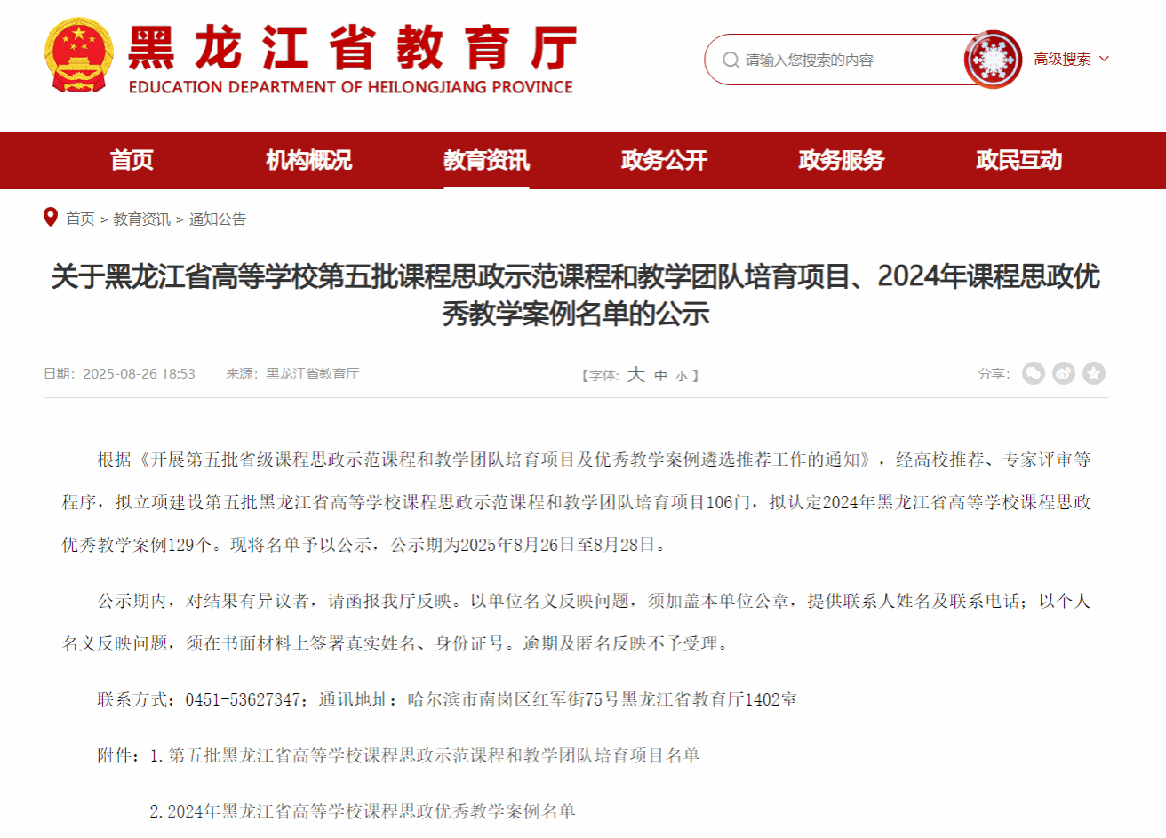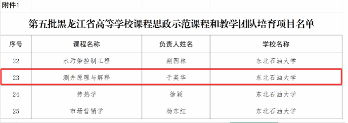 近日,黑龙江省教育厅正式公布了第五批高等学校课程思政示范课程和教学团队培育项目名单。best365申报的《测井原理与解释》课程成功入选,荣获省级课程思政示范课程称号,相应教学团队同时获评省级课程思政示范教学团队。