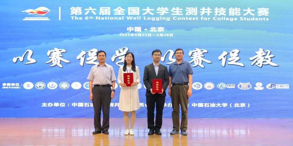 5月26日-28日第六届全国大学生测井技能大赛首届全国测井青年教师教学大赛在中国石油大学(北京平校区举行。我校best365足球官网派出1支研究生代表队和2本科生代表队参加决赛,经过三天激烈角逐,研究生队获大赛一等奖,本科生队分获二等奖和三等奖研究生李卓、张钰威、修欧阳分别获得最佳专业知识奖、最佳知识竞赛奖、最佳解释报告奖,姜艳娇获得指导教师奖。在首届全国测井青年教师教学基本功大赛(测青赛)中,我校姜艳娇和唐晓敏老师分别获得大赛特等奖和一等奖。