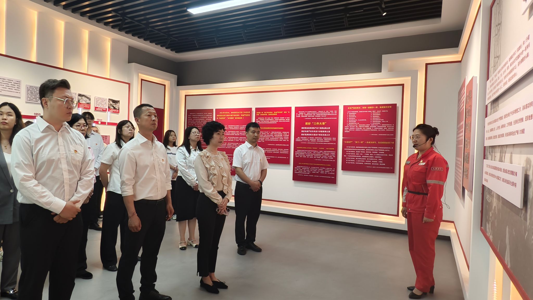 动中,师生党员认真聆听工作人员的讲解,先后参观了新时代党员讲习所,党史、精神谱系教育室,严实作风教育室,“吸铁石”型党支部,党支部书记工作室。“严实作风教育室”展示了历代共产党领导人关于“严”和“实”的重要论述,“五清三会”基本功训练更是为党建工作者树立了鲜明导向,建立了明细标准。通过参观学习,师生党员们对习近平总书记关于基层党建的指示要求和能源安全的重要论述有了更加深刻的认识。
