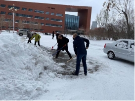 2021年11月8日-10日,一场突如其来的暴雪袭击了美丽的百湖之城大庆,路上积雪达到了近30厘米深,给市民的生活出行带来了很大的麻烦。为响应大庆市的清雪号召,2021年11学10日上午10点勘查技术与工程系教师党支部组织支部成员在best365足球官网门前到主干道方向进行了清雪志愿活动。支部成员纷纷放下手中的工作,拿着工具参与到清雪志愿活动中来。