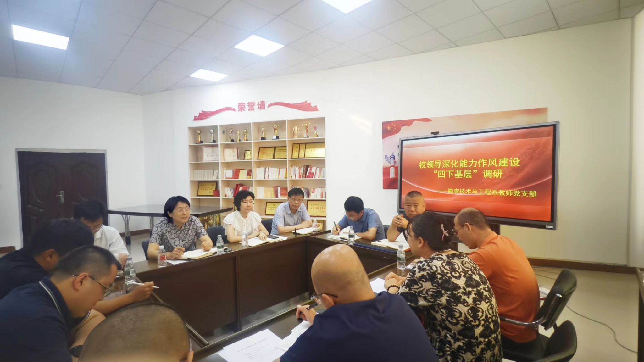 会上,勘技系支部书记王宁详细汇报了支部政治功能发挥、组织体系建设、党员队伍建设和党建特色凝练等情况。石颖充分肯定了党支部的工作和取得的成绩,并与支部党员进行深入交流,针对教师关心的问题,提出有针对性的指导意见,帮助支部解决实际问题。