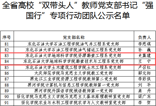 近日,教育部办公厅和省委教育工委公布了全国和省级首届高校“双带头人”教师党支部书记“强国行”专项行动(以下简称“强国行”专项行动)团队名单。best365足球官网资源勘查工程系党支部书记史集建、勘查技术与工程系党支部书记王宁2名教师党支部书记成功入选省级“强国行”专项行动团队。