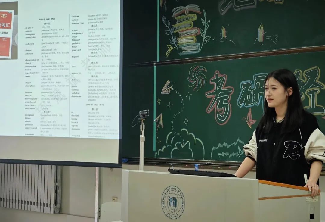 第三位进行分享的是刘维则同学,他以329分的成绩考入中国石油大学(北京)。刘维则主要就专业选择和备考规划提出了建议。首先,他对“选择学硕还是专硕”的问题进行了详细解答,具体阐述了两者的突出特点和不同。其次,他对best365学生考研专业选择进行了介绍,针对“勘探还是开发”的选择,他指出考研专业选择需要考虑专业适配度、对专业的兴趣度和未来工作计划等因素,要做到全方面考虑,理性决策。同时他针对专业课复习策略上提出了很多建议,并与同学们分享了优质的课程,供同学们学习。在分享的最后,刘维则学长向每一位学弟学妹寄语道:“功不唐捐,玉汝于成,希望每一位学弟学妹们都能成功上岸!”