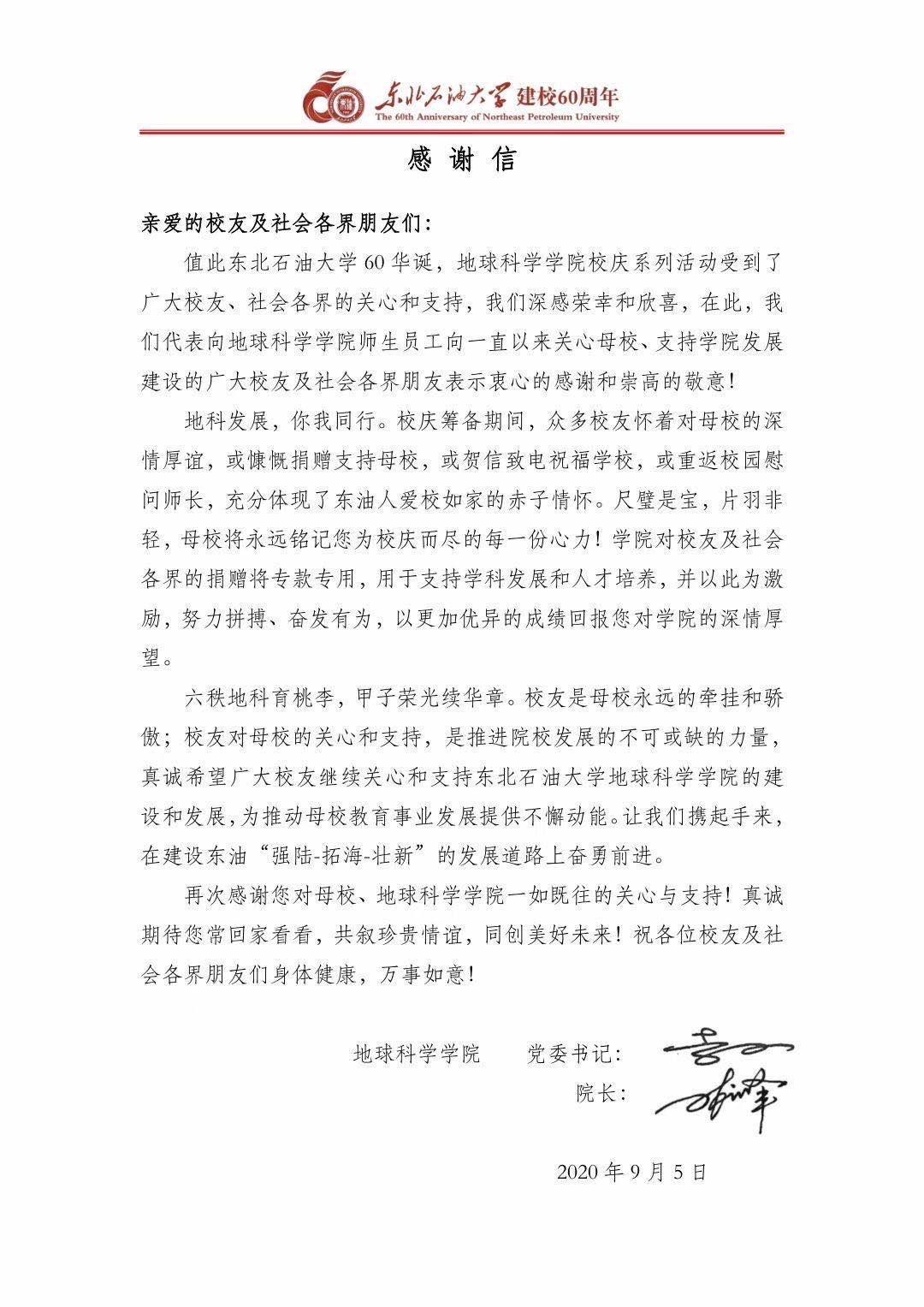 best365足球官网致校友的感谢信