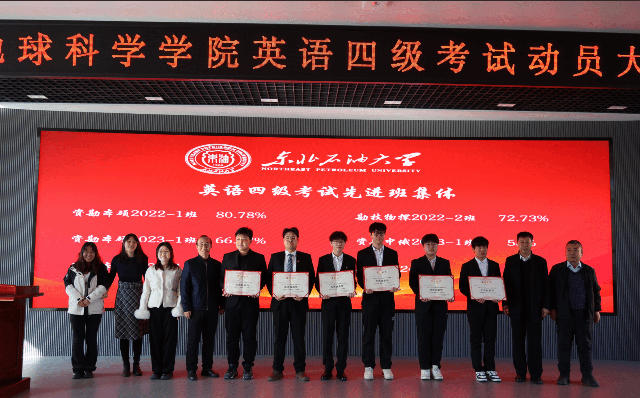 会上,学院表彰了在过往英语四级考试中涌现出的一批成绩优异的个人、学风优良的班级和互助共进的宿舍集体。激励更多同学以榜样为帆,在知识海洋中破浪前行。学院党委书记韦丹宁、获奖班级班主任、辅导员分别为英语四级考试先进个人代表、先进班集体代表、模范寝室代表颁发荣誉证书。