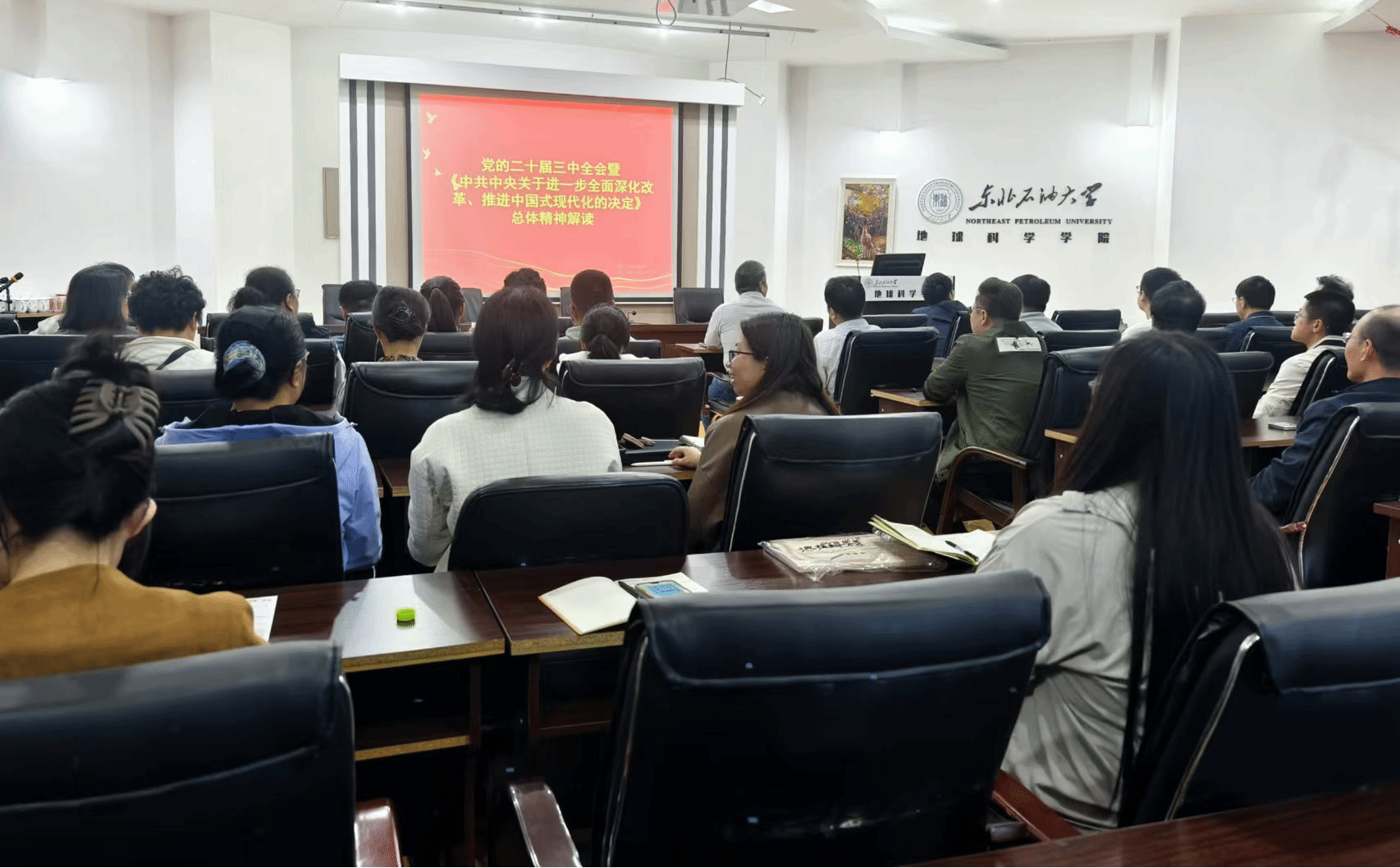 为深入学习宣传贯彻党的二十届三中全会精神,引导广大党员干部将思想和行动统一到全会精神上来,9月20日下午,学院在地科馆511会议室开展了“学习贯彻党的二十届三中全会精神”培训。学院全体教师参加了培训,培训由党委书记韦丹宁主持。